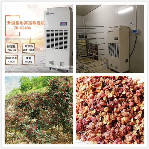 花椒干燥用耐高溫除濕機(jī)排濕好:花椒是一種香料,餐桌上經(jīng)常見(jiàn)到它,而且還是一味中藥材,可以治病,據(jù)說(shuō)花椒水泡腳可以很好的除濕,而用花椒制作的菜肴就更多了,花椒雞、花椒鴨味道鮮美,花椒油更是吃水餃的必備?;ń吩谖覈?guó)的資源非常豐富,北起東北南部,南至五嶺北坡,西南至西藏東南部,東南至江浙沿海地帶,這些地方都有分布和種植,花椒種植已經(jīng)成為很多農(nóng)民致富奔小康的首選。