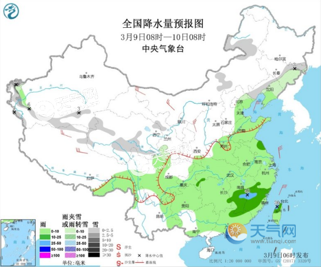 從上面中國(guó)天氣網(wǎng)發(fā)布的天氣預(yù)報(bào)圖中,我們可以看到福建跟江西部分地區(qū)的的強(qiáng)降水是很明顯的,雨量在25到40毫米左右,昨天晚上,也就是3月8號(hào),杭州的降水也不小,小編在下雨前出去了一下,沒(méi)有帶傘,回家就成了落湯雞。雖然這場(chǎng)降水為農(nóng)業(yè)生產(chǎn)提供了基礎(chǔ),但是還是要做好地質(zhì)自然災(zāi)害的防范工作,預(yù)防因?yàn)閺?qiáng)降水出現(xiàn)的泥石流跟洪澇災(zāi)害。