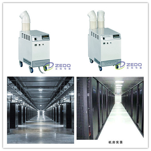 4、超聲波加濕機(jī):這種設(shè)備是使用超聲波振蕩,將水霧化后形成5到10微米的顆粒,通過管道輸入機(jī)房內(nèi)部,霧氣會(huì)迅速蒸發(fā),于是就可以加濕機(jī)房了。它的優(yōu)點(diǎn)是體積小,加濕速度快,噪音低,能耗低,價(jià)格便宜;缺點(diǎn)是不能潔凈加濕,需要配置純水機(jī),還有霧化器需要定時(shí)清潔,否則會(huì)降低加濕效果。當(dāng)然如果機(jī)房面積不大,還可以使用純水超聲波加濕機(jī),這種設(shè)備使用純凈水為水源,可以解決機(jī)房潔凈加濕的問題。