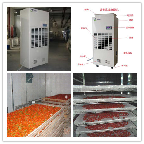 一般冷凍式除濕機(jī)的工作環(huán)境溫度為5-38℃,超過38℃除濕機(jī)將實(shí)施自動(dòng)保護(hù)而停機(jī)。但在物料干燥室,烘干房?jī)?nèi),其室內(nèi)溫度一般超過40℃,所以一般的冷凍式除濕機(jī)無法在此環(huán)境下工作?,F(xiàn)在一般企業(yè)的物料干燥方法是將干燥室,烘干房?jī)?nèi)濕熱空氣通過風(fēng)機(jī)強(qiáng)行外排。這樣,室內(nèi)的熱量也隨之排出室外。以前的枸杞烘干也是如此,這樣會(huì)降低烘干速度,現(xiàn)在只需要使用烘干除濕機(jī)來排濕,就可以做到不需要通風(fēng)就可以排濕,它可以在室內(nèi)溫度高于38℃低于55℃的環(huán)境下除濕, 可廣泛應(yīng)用于制藥、化工、食品、輕工、重工等行業(yè)物料及產(chǎn)品的加熱固化、干燥脫水。